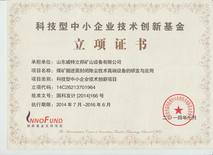 • 濟寧市首屆創新大賽“煤礦采掘面濕噴除塵系統設備”創新組二等獎